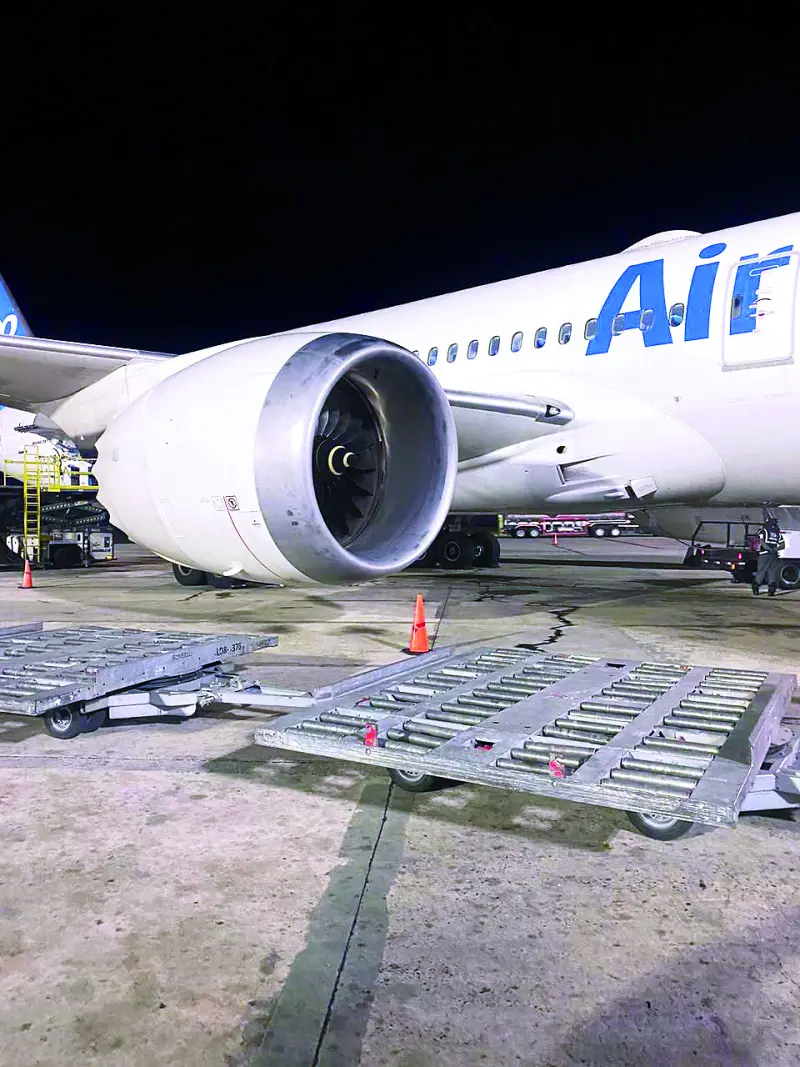 Indicó que la línea aérea está a la espera de unas piezas para reparar la parte afectada del fuselaje y trasladar la aeronave a Madrid, España.