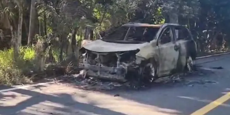 Dajabón.- Varias Personas que ocupaban una yipeta que se desplazaba por la carretera ¨Pinal Claro-Santiago de la Cruz¨, municipio ¨Loma de Cabera¨, salvaron sus vidas, al incendiarse la misma.