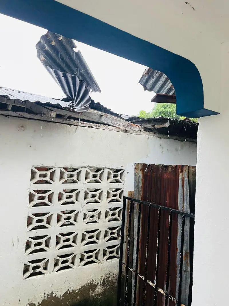 En la provincia Hermanas Mirabal el fuerte viento hizo que más de 10 viviendas perdieran su techo y varios árboles se derribaran, obstaculizando las vías.