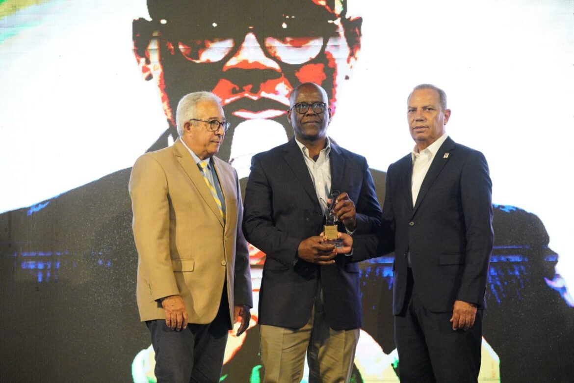 La estatuilla fue entregada por el ingeniero Garibaldy Bautista, presidente del COD, y el doctor Dionisio Guzmán, presidente del Pabellón de la Fama del Deporte Dominicano.