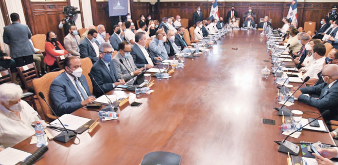 La reunión se extendió por más de dos horas y tuvo lugar en el Salón de Consejo del Palacio Nacional, donde participaron ministros, directores y administradores del gobierno.