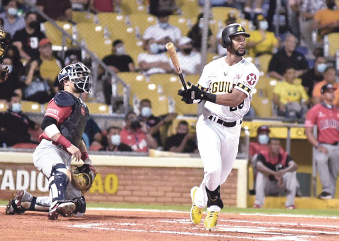 Leody Taveras abrió el juego con un cuadrangular solitario y Yunesky Maya lanzó cinco entradas y un tercio de dos hits para que las Águilas blanquearn seis por cero a los Leones del Escogido en el Estadio Cibao.