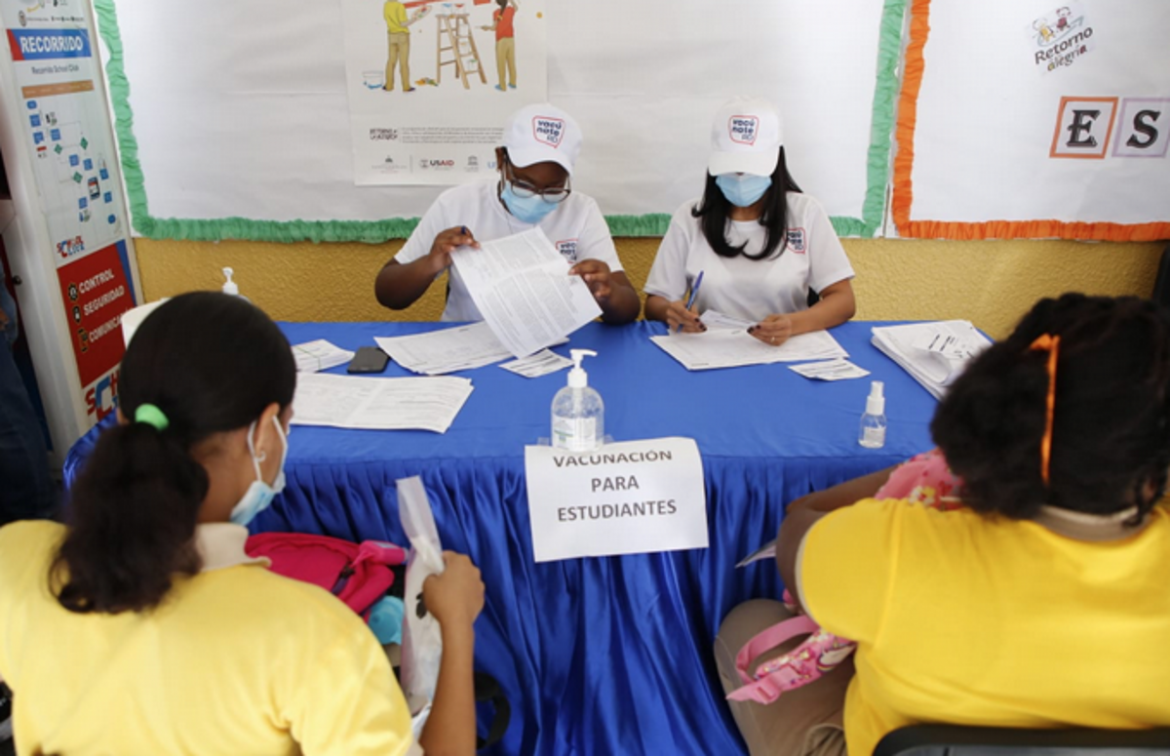 Explicó que los centros escolares han estado aplicando el protocolo de prevención elaborado por los ministerios de Salud Pública y Educación, donde el niño o profesor contagiado se aísla, pero el centro continúa impartiendo su docencia. “La escuela sigue siendo un sitio seguro y felicitamos a los centros escolares y al sistema educativo por mantener firme la aplicación del protocolo”, señaló Rivera.Asimismo, en torno a la decisión de empezar a aplicar la vacuna contra el Covid-19 en niños de cinco a 11 años, el ministro de Salud Pública dijo que para el próximo lunes a las 4:00 de la tarde están convocados los diferentes actores del sistema para retomar la discusión al respecto. Dijo que en la reunión en las que participarán las sociedades médicas especializadas, el Colegio Médico Dominicano, asesores y autoridades de salud, se revisarán las datas internacionales existentes sobre la vacunación en niños, en lo cual ya se ha avanzado bastante.