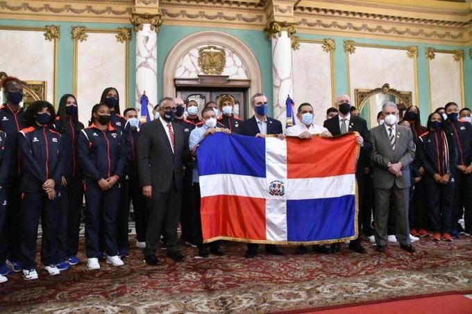 En el acto, celebrado este viernes en el salón de Embajadores del Palacio Nacional, el presidente de la República, Luis Abinader, entregó la enseña tricolor que ondeará en Cali, Colombia, durante la cita multideportiva que se llevará a cabo del 25 de este mes al 5 de diciembre.