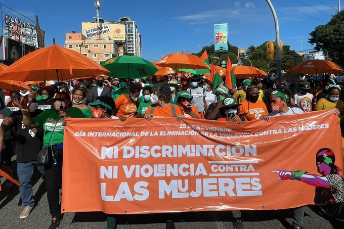 Con camisetas verdes, naranjas y amarillas, decenas de mujeres marcharon hasta concentrarse ante el Congreso Nacional, donde exigieron parar “la furia machista, clasista y racista” que, aseguran, “azota a mujeres, adolescentes, niñas, mujeres trans, dominicanas, haitianas y dominicanas de origen haitiano”.