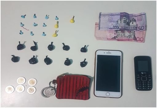 En tanto que, López fue capturado con una carterita color rojo, que contenía en su interior diez porciones de un vegetal verde, diez porciones de un material rocoso y otras tres porciones de un polvo blanco, que se presumen ser marihuana, crack y cocaína, además de dos celulares y la suma de trescientos pesos en efectivo.