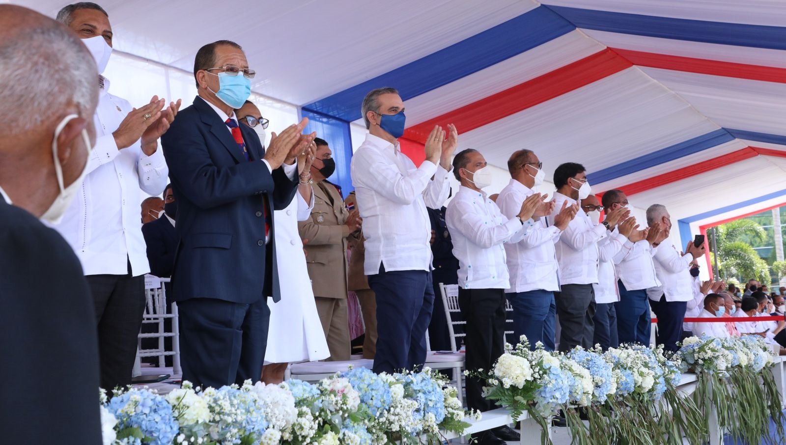 Al finalizar el acto, el presidente Abinader depositó una ofrenda floral en la Estatua de Juan Pablo Duarte, en el parque Duarte.