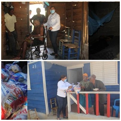 DAJABÓN, República Dominicana.- La Gobernadora Civil de Dajabón Licda. Rosalba Milagros Peña, distribuyó este jueves decenas de raciones alimenticias casa por casa a familias del barrio La Mara de esta localidad y entregó una silla de ruedas a un señor con problemas de salud del mismo sector.