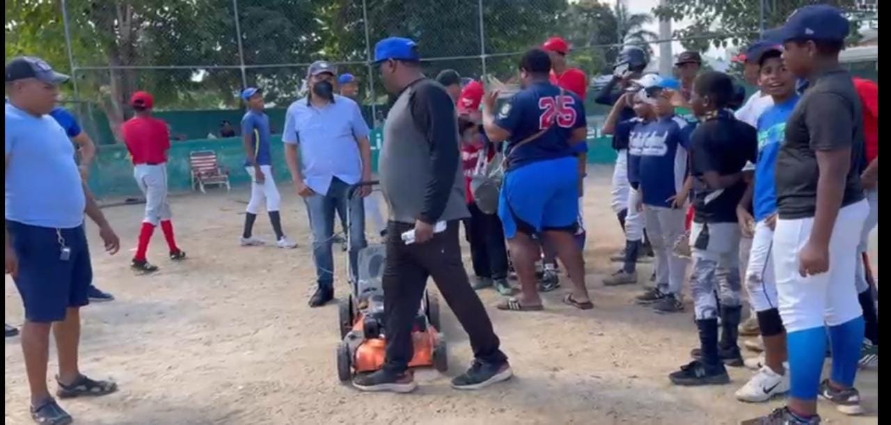 Los entrenadores, niños y adolescentes que practican el béisbol en este lugar, agradecieron a David Sosa por esta importante donación, que les permitirá de manera continua dar mantenimiento al play.