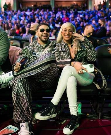 La dominicana oriunda de Los Minas acompañó al cantante puertorriqueño a presenciar el Slam Dunk Contest, Concurso de Triples y Habilidades del Juego de Estrellas de la NBA.