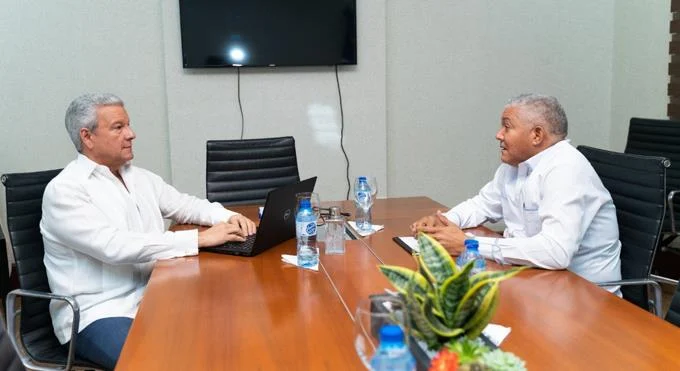 El ministro de la Presidencia, Lisandro Macarrulla y el director de la Oficina Metropolitana de Servicios de Autobuses (OMSA), Radhamés González, sostuvieron una reunión de trabajo con el propósito de evaluar los avances operativos efectuados en ese organismo, como parte del plan maestro de Transformación del Transporte y la Movilidad.