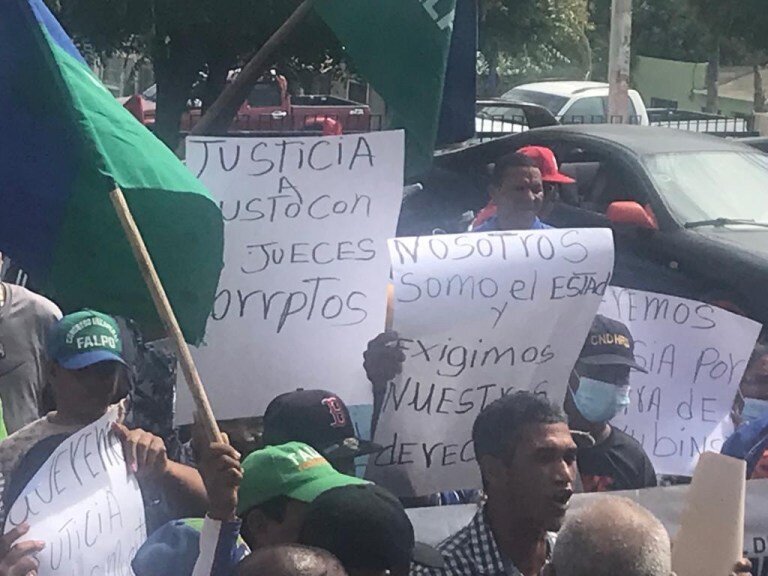 La protesta por parte de los integrantes del Falpo que se llevó a cabo en la parte frontal del palacio de justicia de Montecristi, donde los manifestantes portando pancartas y vociferando consignas reclamaban que se aplique más y una justa aplicaciones de las leyes por parte de los jueces y los miembros del Ministerio Público.