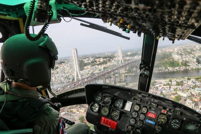 El característico sonido de la aeronave también se sintió en La Zurza, donde los operativos se realizan, además, por tierra y agua.