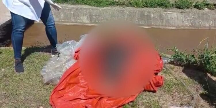 El cuerpo encontrado esta mañana en el canal Juan Calvo, sector los Socias de esta ciudad, estaba envuelto en una lona de color Mamey, atado con cinta adhesiva de color transparente.