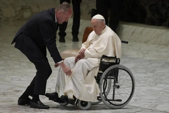 De esta manera, el papa vuelve a anular actos de su agenda por la gonalgia (dolor generalizado de articulación de la rodilla) que sufre desde hace meses y de la que parecía estaba mejorando después de que se le vio hace unos días andando ayudado con un bastón y sin la silla de ruedas que había empezado a usar.