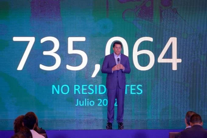 Collado indicó que con este nuevo logro se proyecta cerrar el año batiendo por primera vez en la historia la cifra de más de 7 millones de millones de turistas, y dijo que con esta llegada de visitantes no residente de julio 2022 representa un 10% más que julio 2018, un 24% por encima de julio 2019 y 30% por encima del mismo mes del 2021.