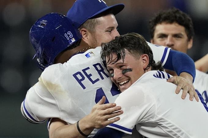 Los Reales llegaron al noveno inning con una desventaja de 1-0, pero el dominicano Emmanuel Clase obsequió boletos a sus dos primeros rivales. MJ Melendez empujó a Kyle Isbel con la carrera de la igualdad y el venezolano Pérez remolcó a Nicky López con la anotación que significó el triunfo.
