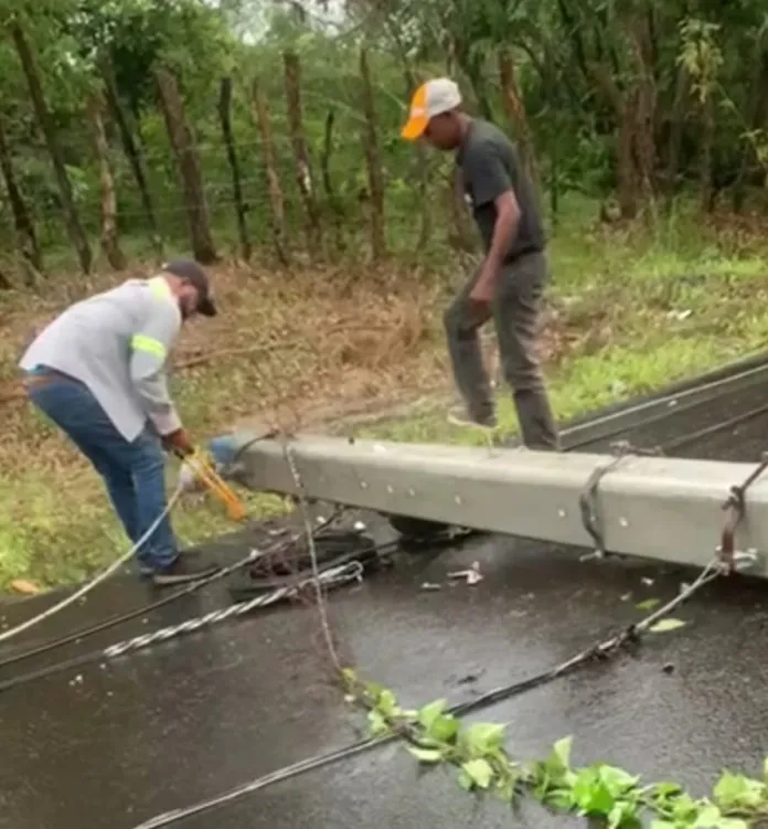 El fenómeno, que también originó un apagón en las redes de electricidad de la empresa Edenorte Dominicana, derribó el poste en la comunidad Pinar Claro, perteneciente al distrito municipal de Santiago de la Cruz, el cual obstaculizó el tránsito vehicular por varias horas en la carretera principal, que conecta a las provincias Santiago Rodríguez y Dajabón, provocando un taponamiento.
