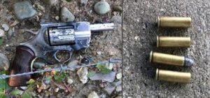En el patio de una vivienda cercana, ubicada frente al negocio de bebidas alcohólicas Las 40, en dicha localidad, los agentes preventivos y de investigaciones policiales encontraron el revólver marca Titán, calibre 38, con la numeración borrada, tres casquillos y un proyectil para el mismo.