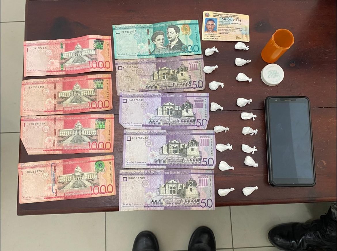 Santiago Rodríguez.-Fue apresado este martes, en esta localidad, el nombrado Yoel Bautista Pérez, de 32 años, con 17 porciones de presunta cocaína, la suma de cuatro mil setecientos pesos en efectivo y un teléfono celular.