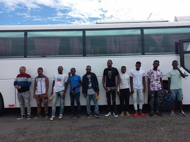 Agentes de la Dirección General de Migración detuvieron un autobús del transporte público con 23 haitianos indocumentados en el kilómetro 9 de la autopista Duarte, Distrito Nacional.