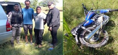 Santiago Rodríguez.-Dos personas fueron apresadas ayer en el municipio de Villa Los Almácigos, de esta localidad, acusadas del robo de una motocicleta, recuperada mediante labor de inteligencia en unos matorrales, en el municipio de Partido, provincia de Dajabón.