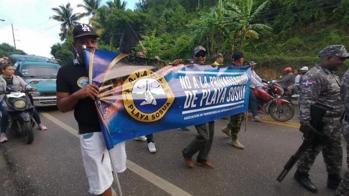 Vendedores de la Playa de Sosúa realizan una marcha que se dirige a Puerto Plata en reclamo de la reparación del puente de Cangrejos, la construcción del hospital y que se cumpla con las 3 plazas en la playa de Sosúa.