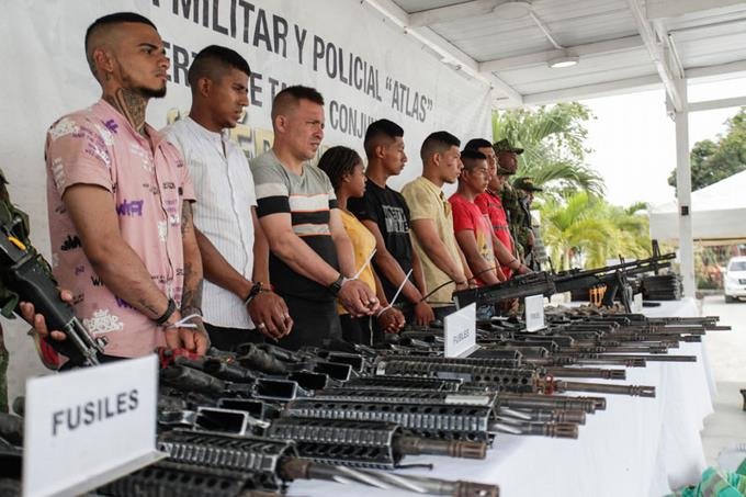 “Durante la operación se logró la incautación de 27 fusiles, una ametralladora, dos embarcaciones tipo flipper, una pistola (…), abundante munición y explosivos”, detalló el Ejército en un boletín.