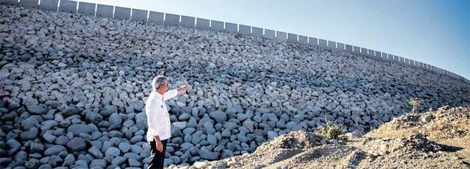 El Indrhi informó que el muro tiene una longitud de 2.2 kilómetros y núcleo en asfalto para una mayor impermeabilización, además se encuentra en su cota máxima de 206 metros sobre el nivel del mar, y se trabaja en la instalación de las compuertas del desagüe de fondo y del vertedor de servicio.