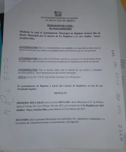 Dajabón RD- Debido al deceso de Nancy Díaz, la Alcaldía Municipal a través del consejo de regidores, declara día de Duelo Municipal en este municipio de Dajabón, iniciando desde el jueves 23 de presente mes hasta el viernes 24 hasta las 4; 00 pm.