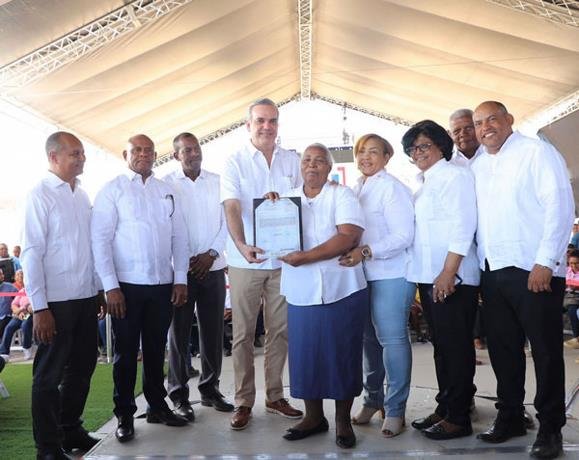 El presidente Luis Abinader encabezó ayer la entrega de los primeros 500 apartamentos de un total de 2,440 que serán construidos en el sector San Luis, Santo Domingo Este, a través del Ministerio de la Vivienda como parte del plan “Mi Vivienda Feliz”.