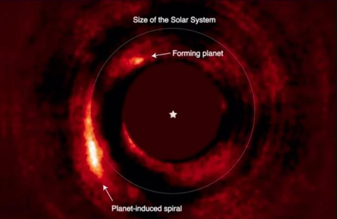 Las imágenes capturadas con el instrumento SPHERE en el VLT revelan una fuente compacta que se mueve durante cuatro años (2015-2019). «Detectamos con éxito un protoplaneta a aproximadamente 37 au (un poco más lejos que la órbita de Neptuno) de la estrella en las cuatro observaciones, y orbita su estrella anfitriona a la velocidad esperada definida por la tercera ley de Kepler».