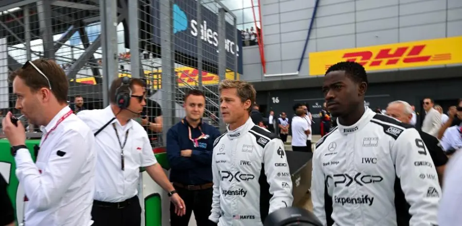 Brad Pitt, que pilotó en el mítico circuito durante el fin de semana, estaba presente el domingo en la parrilla de salida del Gran Premio con un traje blanco y negro, con los colores de Apex, junto al actor británico Damson Idris, con el que comparte cartel en una producción que debería ser estrenada a finales de 2024 o principios de 2025. Será emitida por la plataforma Apple+.