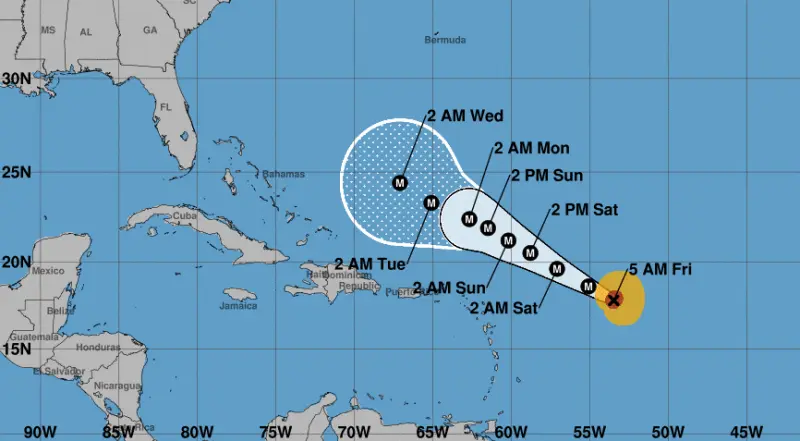 “Para mañana sábado, el cambio del viento del este/noreste favorecido por el desplazamiento del huracán Lee en aguas de atlántico norte, atraerá campos nubosos desde horas matutinas, que junto a la vaguada en altura, provocarán algunos aguaceros locales con tronadas aisladas y ráfagas de viento, sobre La Altagracia, El Seibo, Hato Mayor y Monte Plata.”, indica el informe.