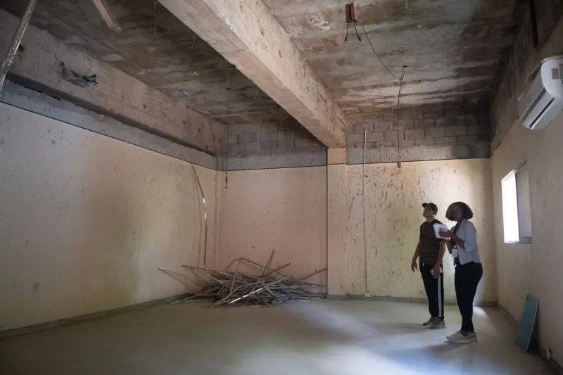 En varias de las aulas, los garrafones del techo se han caído, a pesar de que las terminaciones lucen concluidas, e incluso en algunas hay acondicionadores de aire colocados, pero nunca han sido utilizados.