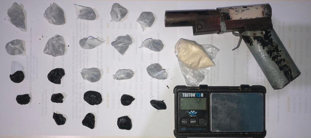 Durante una intervención en el lugar, se ocupó además una balanza y un arma de fabricación casera, denominada “chagón”, donde varias personas que se encontraban en el lugar lograron escapar, al notar la presencia policial.