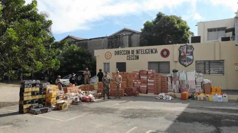 Esas mercancías incautadas durante diferentes operativos realizados a lo largo de la línea fronteriza terrestre, gracias a las labores de Inteligencia que realiza el Departamento de Inteligencia C-2 del Cesfront, en colaboración y apoyo del Ejército de República Dominicana.