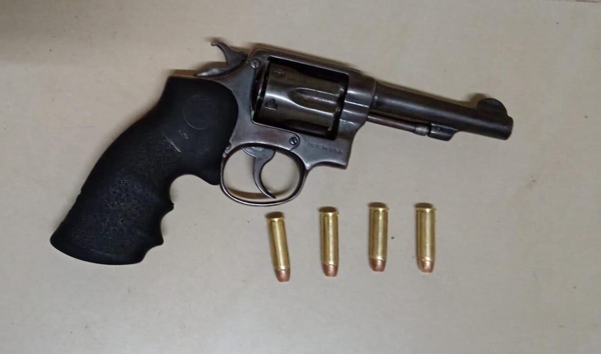 A uno de los invasores se le ocupó un revolver con marca ilegible, numeración 217016 y cuatro cápsulas, ocupándose también en el lugar una motocicleta marca Honda, color rojo, modelo Súper Cup 70, con el número de chasis ilegible.