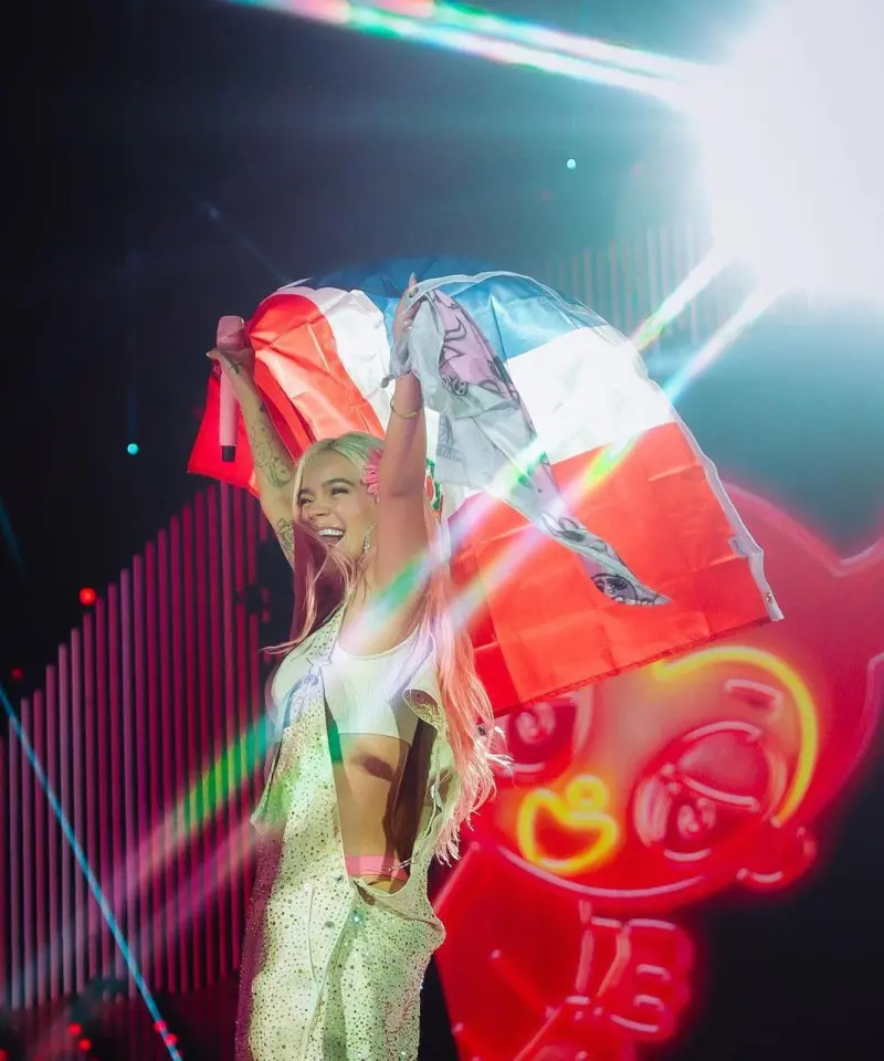 Karol G luciendo un top con la bandera dominicana durante su concierto en el Estadio OlímpicoLISTÍN DIARIO